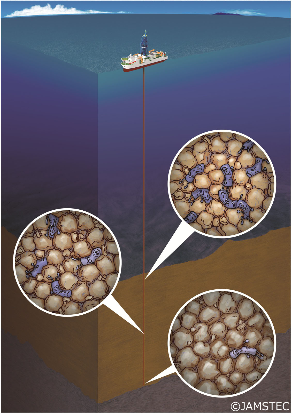 「生物がすむ果てはどこだ?」高い圧力がかかる深海の底のさらに下に、たくさんの微生物がいることがわかってきました。海底下の泥の中にいる微生物、どうやって見つけるのでしょうか?また、どんな暮らしをしているのでしょうか?