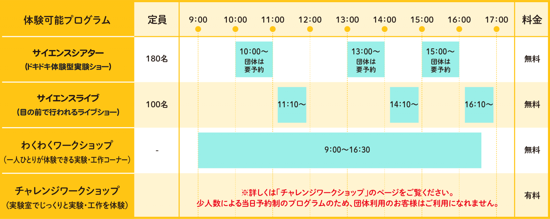 サイエンスシアターをご予約の団体様は、プログラム開始の15分前までにご来館ください。